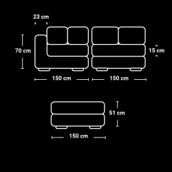 Sofá de líneas simples y puras, con un almohadón de asiento en placa soft y dos almohadones de respaldo en placa hiper soft, ambas de marca Piero.