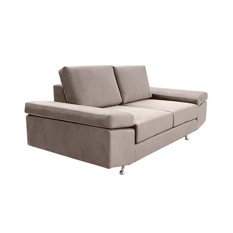 Sofá de línea escandinava. Con dos almohadones de respaldo en placa hiper soft, ambos de marca Piero. Sus apoyabrazos se encuentran levemente inclinados. Incluye dos almohadones decorativos.