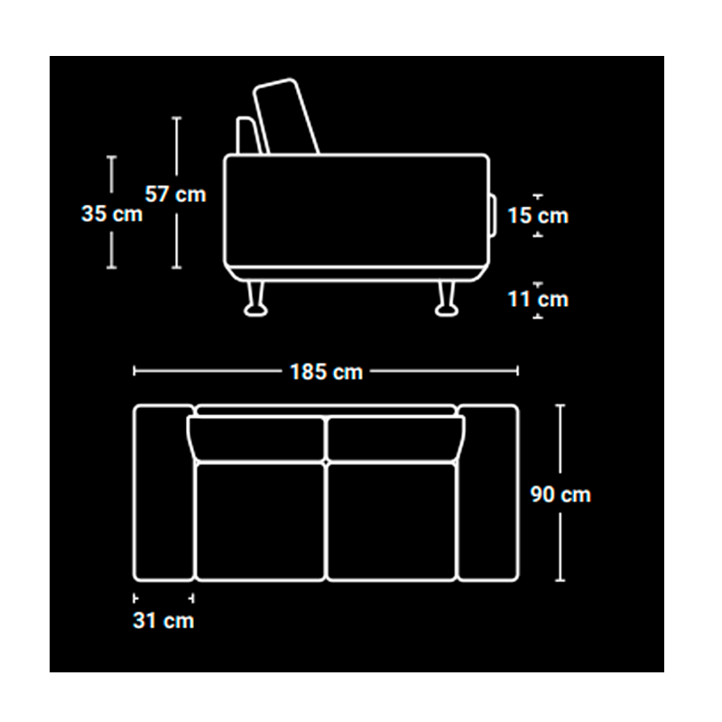 Sofá cama con marinera incluída, con dos almohadones de respaldo con placa hiper soft y un almohadón de asiento en placa soft, ambos de marca Piero. Con diseño de apoyabrazo extra fino de un sólo lado. Colchón cama auxiliar medidas, 1.90 x 0.80 x 0.14 m.